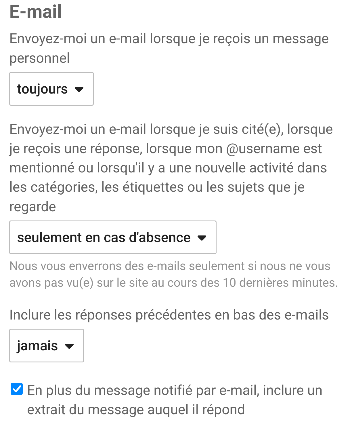 Recevez vous des notifications par mèl quand vous vous êtes sur un fil ou que vous avez indiqué « surveiller » ?